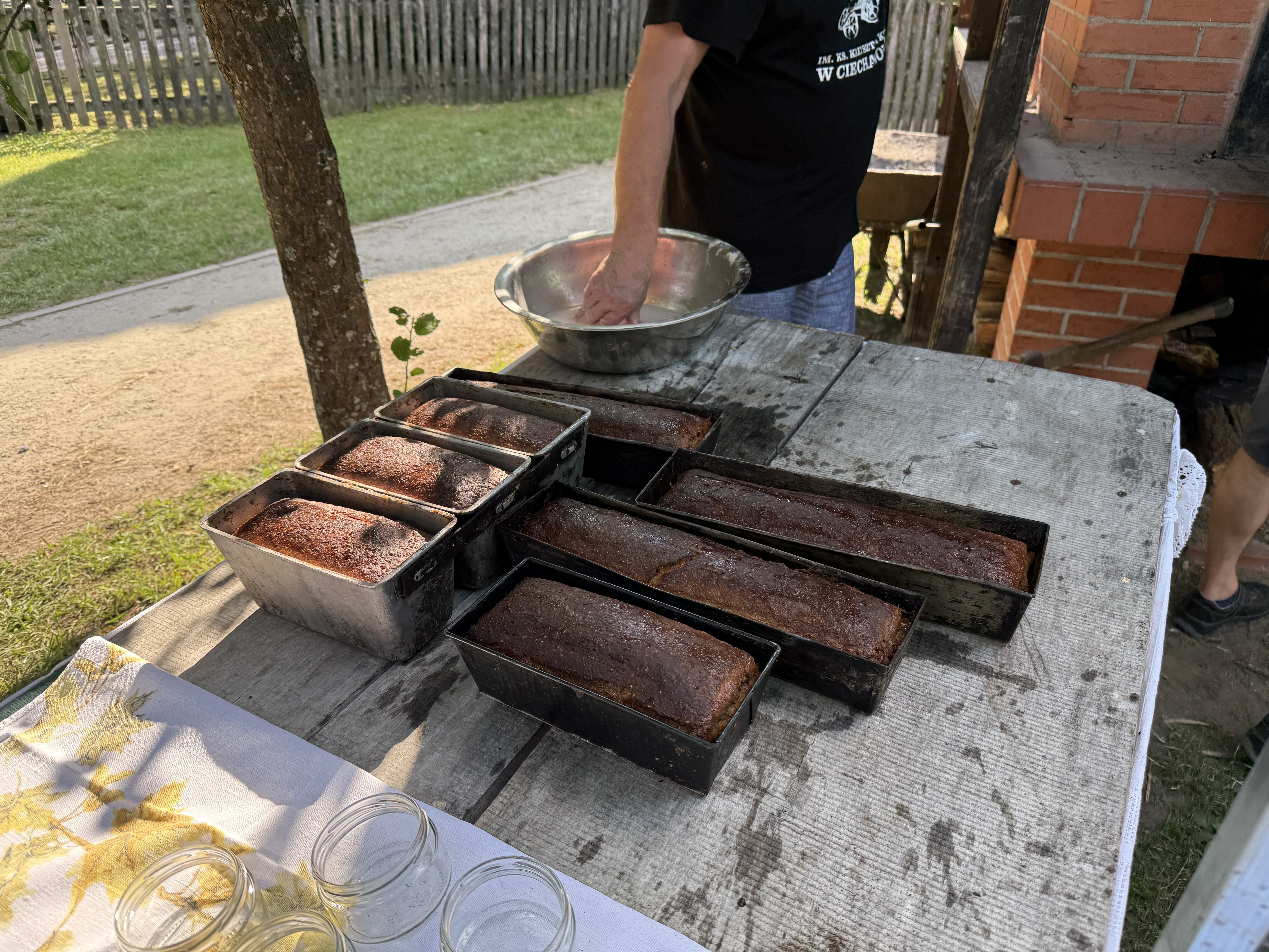 W asyście pomocnika, Pan Zbigniew uroczyście wyciągnął bochenki. Jeszcze gorący, tradycyjny chleb został przesmarowany słoniną, aby nadać mu charakterystyczną, lśniącą skórkę i głębszy aromat, a następnie odstawiony do powolnego wystygnięcia.