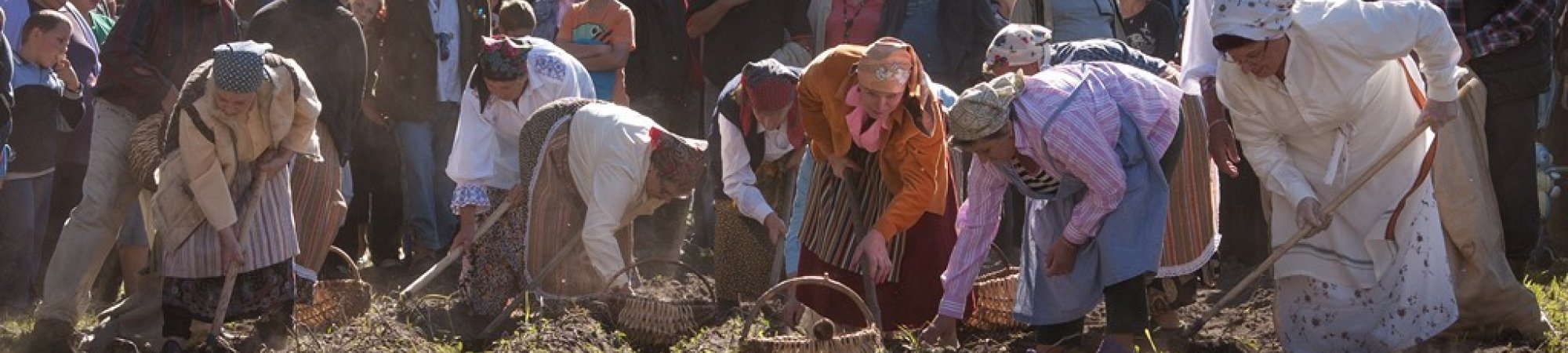 Wśród różnorodnej oferty imprez plenerowych, ten jesienny piknik stanowi najbogatsze w tradycje i zwyczaje wydarzenie etnograficzne w naszym muzeum. W scenerii wiejskiej zaprezentowaliśmy prace polowe i gospodarskie na dawnej wsi podlaskiej. Ten jesienny festyn rodzinny miał na celu przypomnienie i pokazanie tradycyjnych zwyczajów i obrzędów związanych z kopaniem ziemniaków i pracami gospodarskimi oraz domowymi w okresie jesiennym. Najważniejszym punktem programu był pokaz kopania ziemniaków motykami w wykonaniu zespołu ludowego Polne Maki z Dołubowa oraz kopaczką konną i tłoka - zbieranie ziemniaków za kopaczką z udziałem widzów. Po tym nast.ąpiło bronowanie kartofliska broną konną oraz orka.