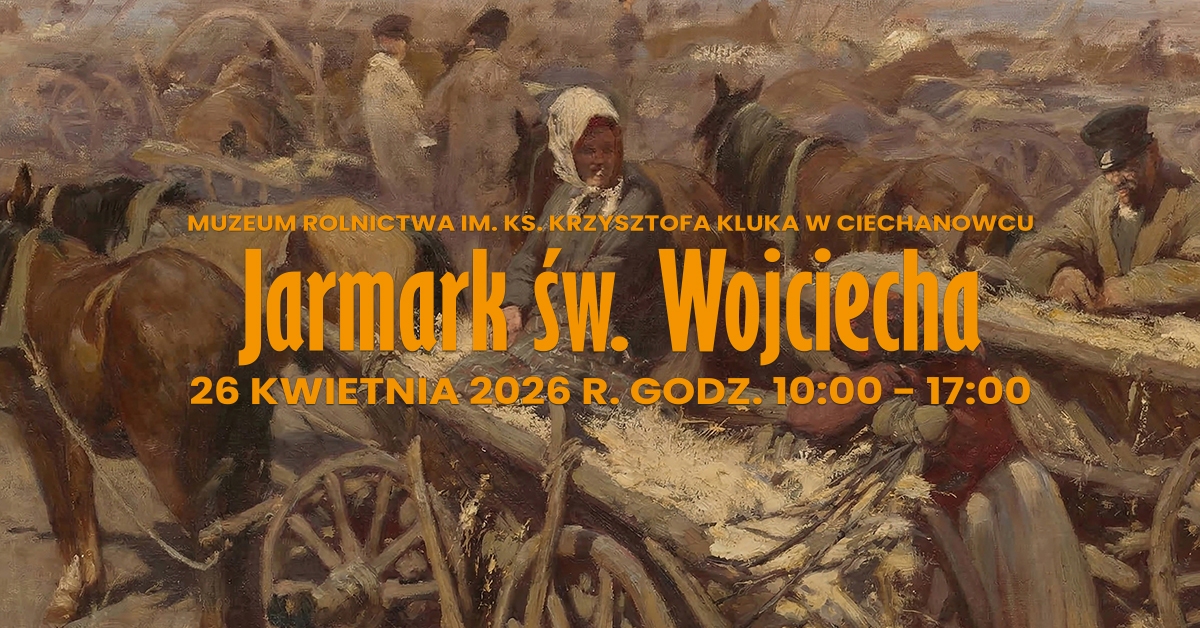 Muzeum Rolnictwa im. ks. Krzysztofa Kluka w Ciechanowcu serdecznie zaprasza na Jarmark św. Wojciecha! Dołączcie do nas 26 kwietnia 2026 r. w godzinach 10:00 - 17:00, aby wspólnie spędzić niedzielę w wyjątkowym klimacie naszego muzeum.