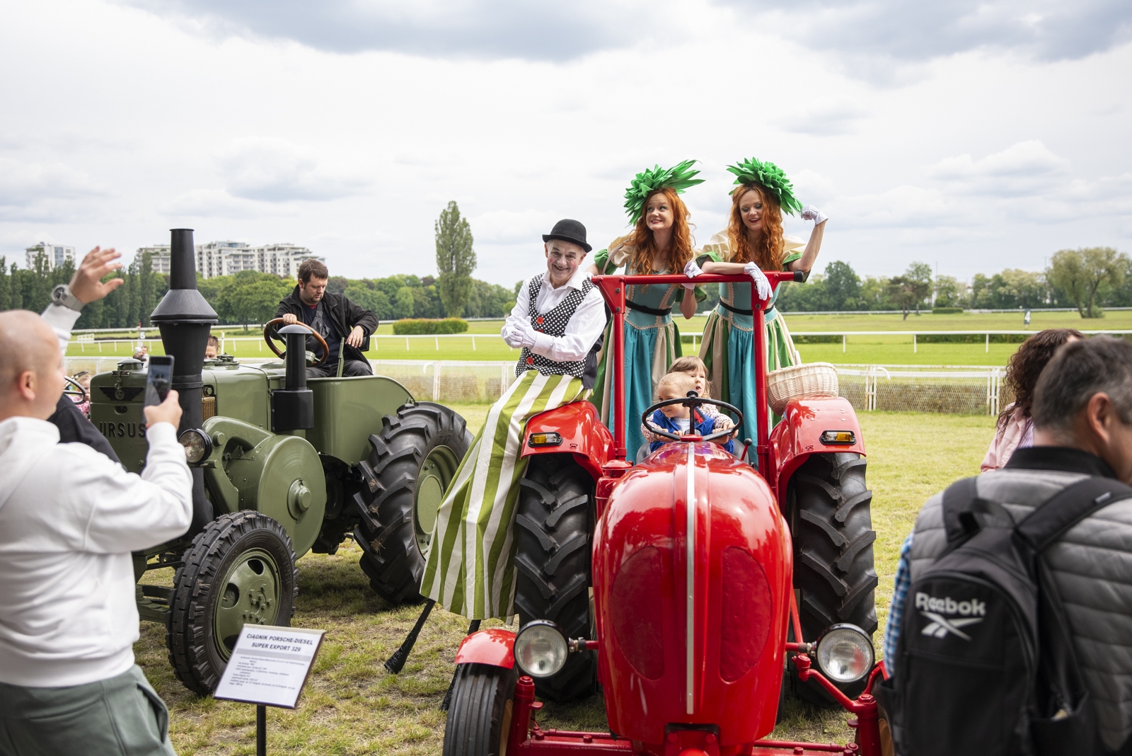 24 maja 2025 r. nasze muzeum na zaproszenie Ministerstwa Rolnictwa i Rozwoju Wsi uczestniczyło w „Pikniku Poznaj Dobrą Żywność” organizowanym na Torze Wyścigów Konnych Służewiec w Warszawie. Nasze stoisko cieszyło się bardzo dużym zainteresowaniem uczestników imprezy, a także mediów ogólnopolskich i lokalnych. Szczególny entuzjazm wśród dorosłych i dzieci wzbudziły przywiezione przez nas zabytkowe ciągniki w liczbie 9 szt. (polskie Ursusy, Porsche, Lanz), na których można było zrobić pamiątkowe zdjęcie, jak również zobaczyć je w ruchu. Przygotowane przez nas interaktywne stoiska etnograficzne (obróbka ziarna w żarnach na mąkę i w stępie na kaszę, tkanie gobelinu, składanie wiejskiej chaty, kręcenie snopków i słomianych warkoczy, wyplatanie koszyków, dojenie krowy, odwirowywanie śmietany i robienie masła, wyplatanie lin i sznurów, degustacja naszego piwa jałowcowego, ciechanowieckiego chleba i podlaskich wędlin) nie mogły opędzić się od zainteresowanych.