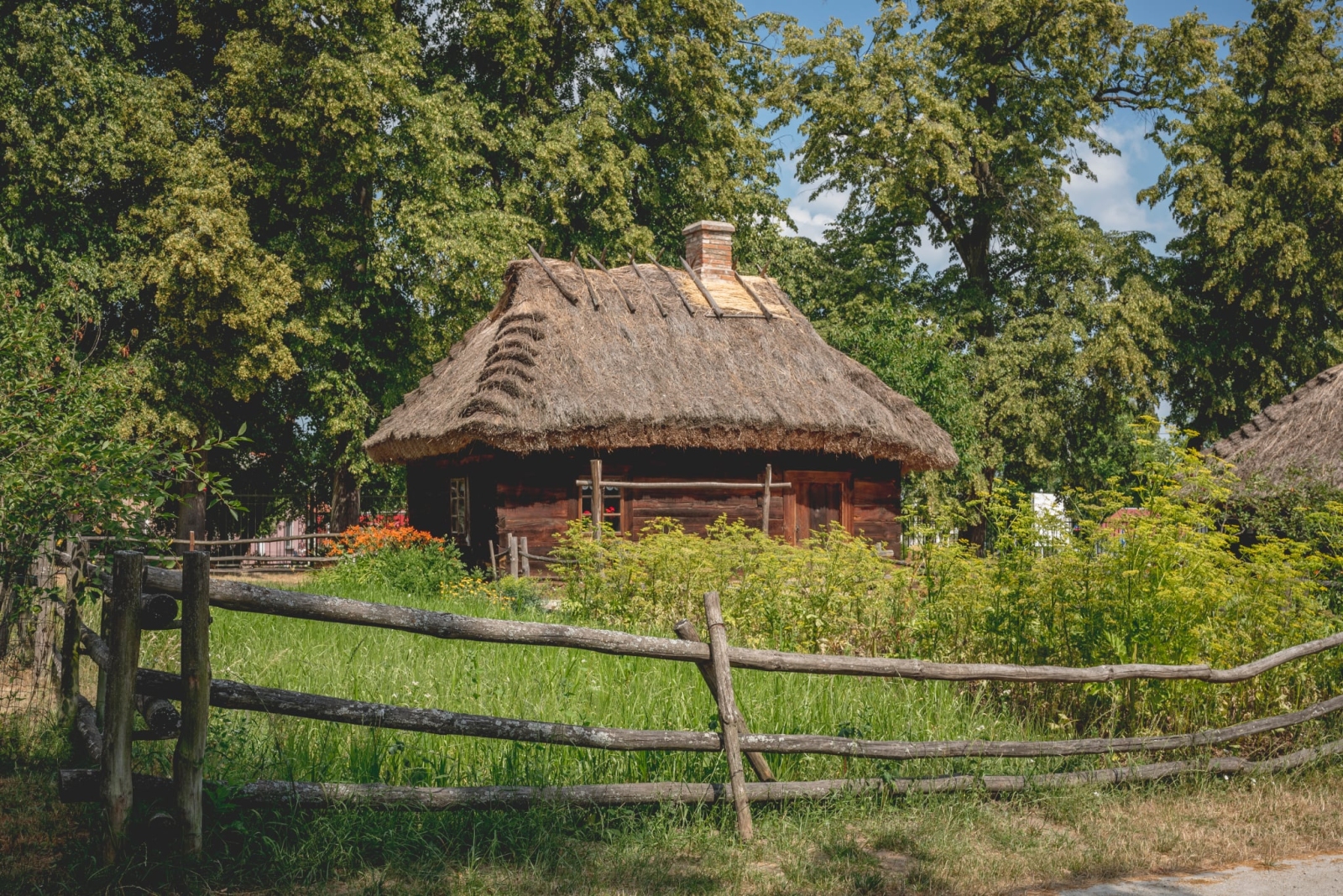 W skansenie w Muzeum Rolnictwa w Ciechanowcu jedna z chat nosi znamiona tego typu budynku. Mowa tu o zbudowanej około 1851 roku chałupie ze wsi Piętki-Gręzki. Reprezentuje ona mieszkanie wyrobnika czyli biednego chłopa trudniącego się pracą najemną lub rzemiosłem, zazwyczaj bezrolnego lub z niewielką ilością gruntu. Posiada ona ściany konstrukcji wieńcowej, wzniesione na planie prostokąta o wymiarach 6,5 x 4,5m. Dach jest czterospadowy, poszyty słomą. W szczytach dachu pod kalenicą widoczne są otwory do odprowadzania dymu, co utwierdza, że chałupa pierwotnie mogła być kurną. Jest to typowa, dla czasów pańszczyźnianych, chata jednoizbowa. Wnętrze półtoratraktowe. Złożone jest z jednej izby, narożnej sieni oraz usytuowanej w głębi za nią komory. We wszystkich pomieszczeniach polepa gliniana. W chałupie możemy obejrzeć, zrekonstruowane urządzenie ogniowo-ogrzewcze charakterystyczne dla wsi podlaskich w XIX wieku. Ekspozycja wnętrza prezentuje mieszkanie bezrolnej, wielopokoleniowej, rodziny chłopskiej z przełomu XIX/XX wieku. Życie rodziny koncentrowało się w izbie. Komora służyła jako miejsce przechowywania odzieży, sprzętów oraz zapasu jedzenia. Warto zwrócić uwagę na prostotę wyposażenia. Szlaban czyli skrzyniowa ława z oparciem, służył w dzień do siedzenia, a w nocy jako łózko. To jeden z bardziej charakterystycznych mebli spotykanych w wiejskich chatach…. Ale o nim już w następnym artykule.