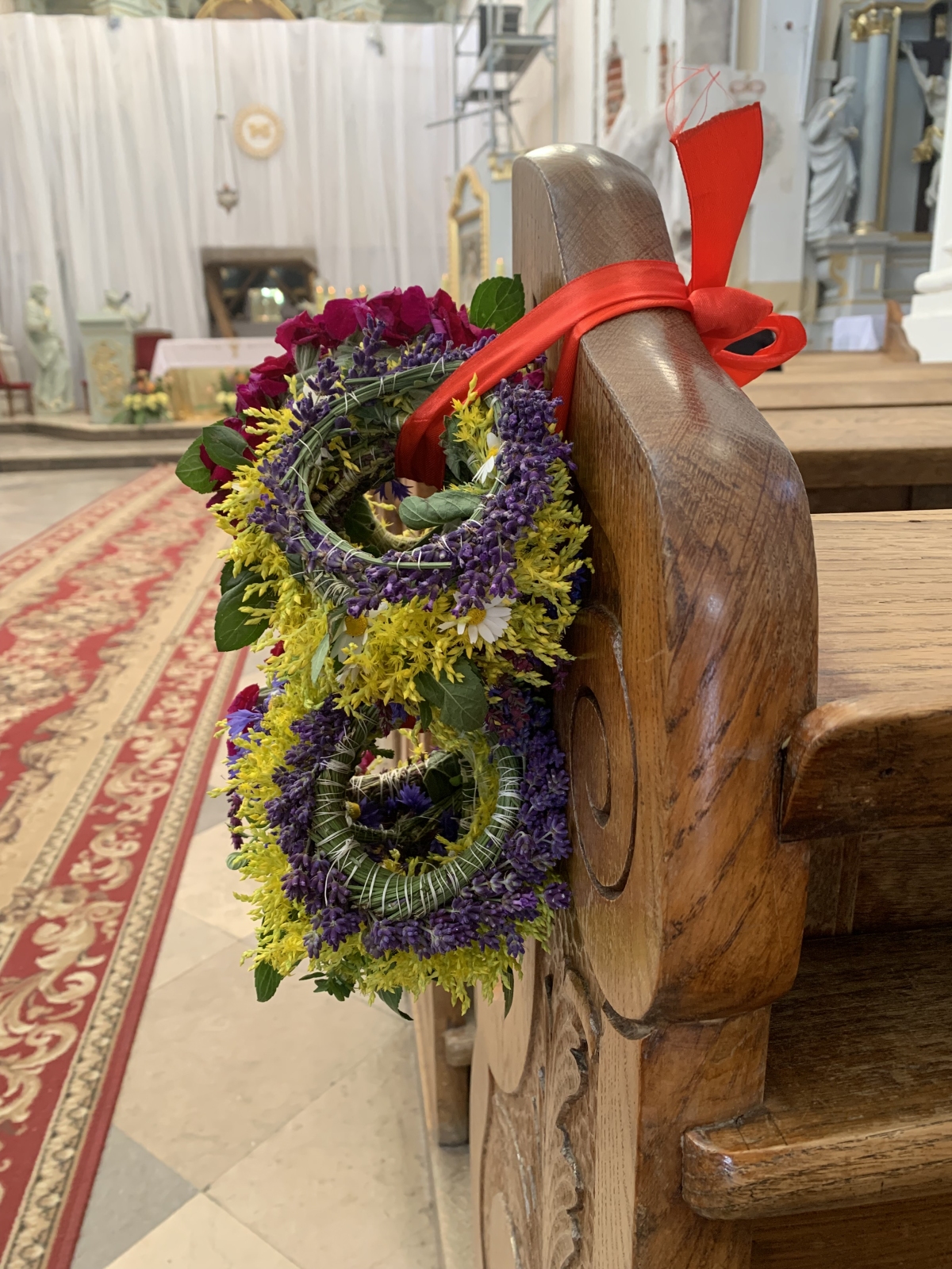 W miniony czwartek, wieczorową porą, w Kościele Trójcy Przenajświętszej w Ciechanowcu w powietrzu unosił się delikatny zapach macierzanki, mięty i lipy. Wiele pań – starszych, młodszych i tych całkiem malutkich, przygotowało wianki. Z potrzeby serca, dla tradycji, dlatego, że ich matki i babki tak robiły. Serdecznie dziękuję wszystkim Paniom, które opowiadały mi o tradycji zaplatania i święcenia wianków oraz wyraziły zgodę na ich sfotografowanie. Na zdjęciach widać, że wianuszki są w większości nadal wyplatane z tych samych roślin co dawniej. „Te tradycyjne stare zioła są najlepsze”, powiedziała mi jedna z Pań. I może tylko czasami niestety troszkę trudniej je odnaleźć.