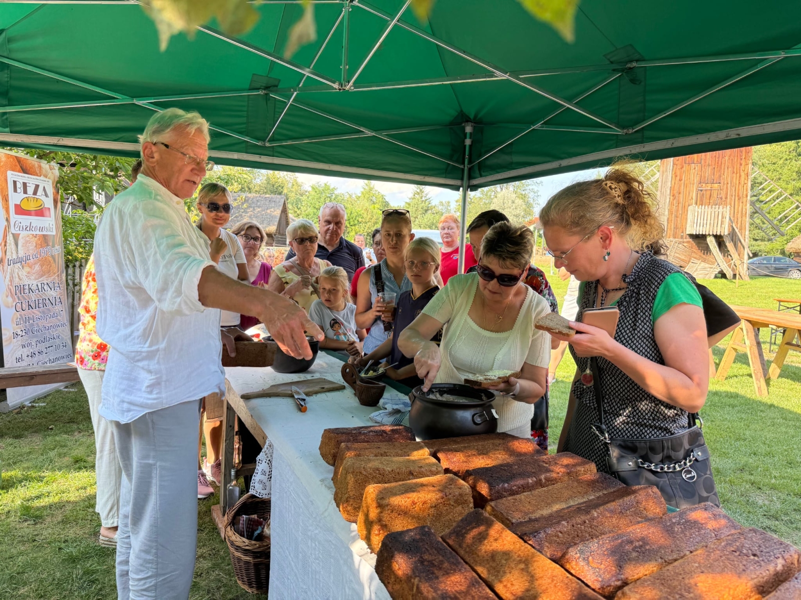 W słoneczną sobotę, 9 sierpnia 2025 roku, w ramach obchodów XXIII Podlaskiego Święta Chleba, w przeddzień głównej uroczystości, odbyły się wyjątkowe warsztaty poświęcone sztuce tradycyjnego wypieku chleba. Wydarzenie zorganizowano w malowniczej scenerii ciechanowieckiego skansenu, przy autentycznym, plenerowym piecu chlebowym.