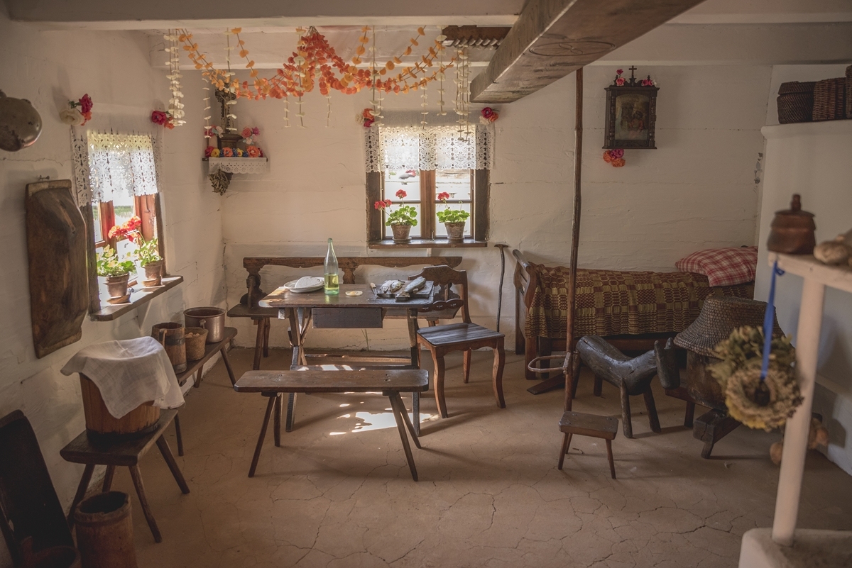 Największy i najstarszy z działów Muzeum. Jego zbiory (14 473 eksponaty) cechuje wielka różnorodność zabytków. Niech świadczy o tym fakt, że znajdują się one niemal na wszystkich wystawach w Muzeum. Można je sklasyfikować następująco, są to narzędzia do uprawy roli, narzędzia i urządzenia rzemieślnicze. Poza tym wszystko to, co składa się na wyposażenie domów wiejskich oraz sprzęt gospodarstwa domowego. Liczne narzędzia do obróbki lnu, sprzęty i wyroby tkackie oraz jedna z większych w kraju kolekcji wełnianych dywanów dwuosnowowych (180 eksponatów). Kolejną część stanowi szeroko pojęty transport wiejski, przedmioty związane z rybołówstwem, pszczelarstwem, pasterstwem i hodowlą. Warte uwagi są zbiory twórczości ludowej (duża kolekcja rzeźb), plastyki obrzędowej (w tym kolekcja pisanek licząca 2 859 sztuk).