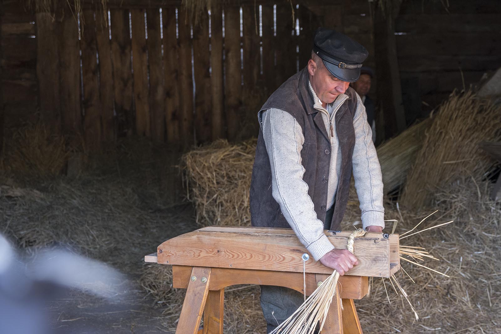Uczestnicy lekcji mają możliwość złożenia małego budynku w konstrukcji wieńcowej. Podczas składania „chatki” omówione będą elementy konstrukcyjne, łącznie ze słomianym dachem i techniką poszywania.