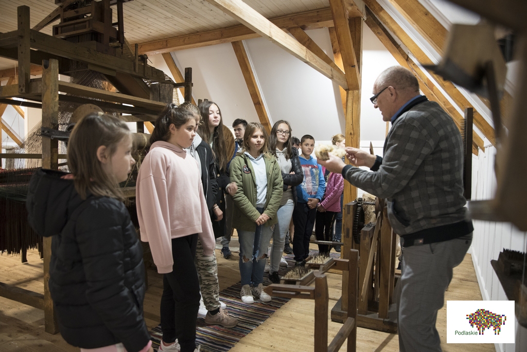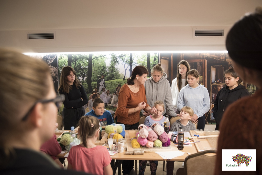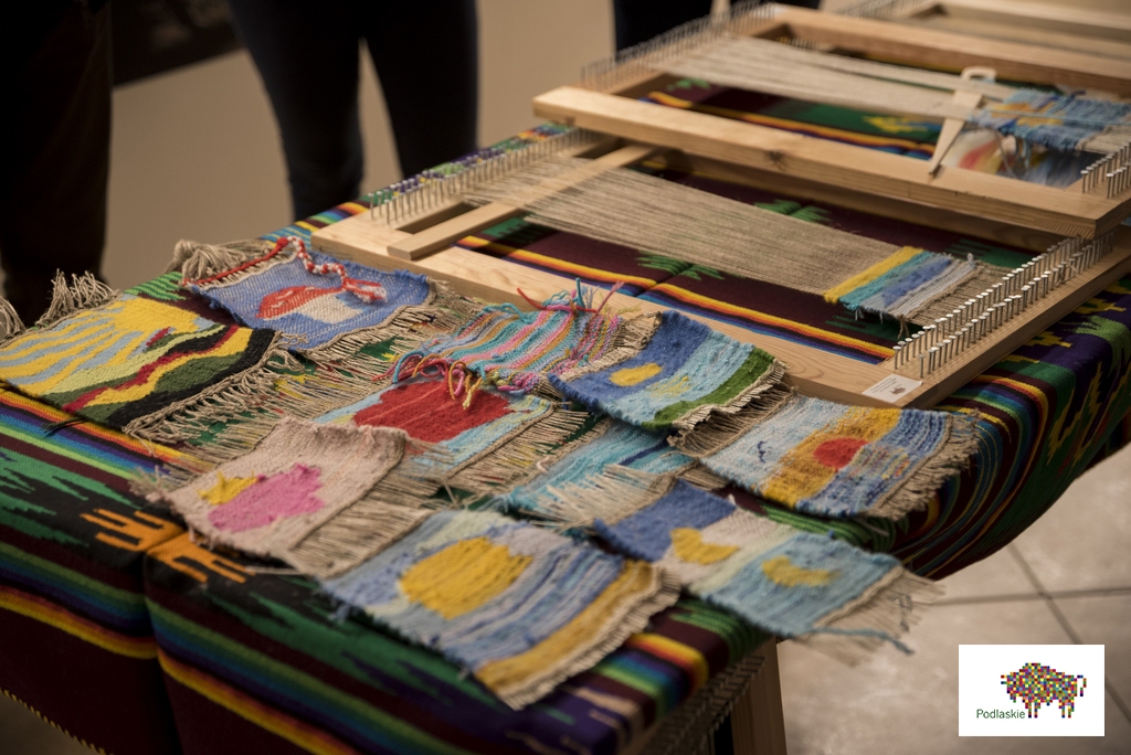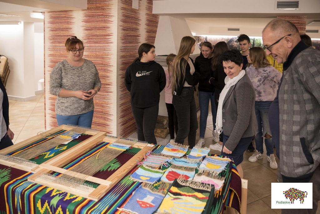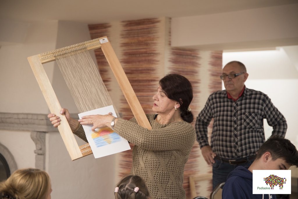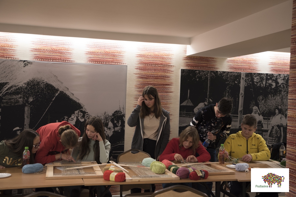 W trakcie zajęć uczestnicy poznali tematykę tkactwa ludowego, a dzięki wizycie na wystawie stałej „Obróbka włókna” w Muzeum Rolnictwa, przyjrzeli się procesowi przygotowania i założenia osnowy, a także technice tkania. Uczestnicy projektu poznali tradycyjne wzory tkackie charakterystyczne dla naszego regonu, które stały się dla nich inspiracją do stworzenia własnych gobelinów.