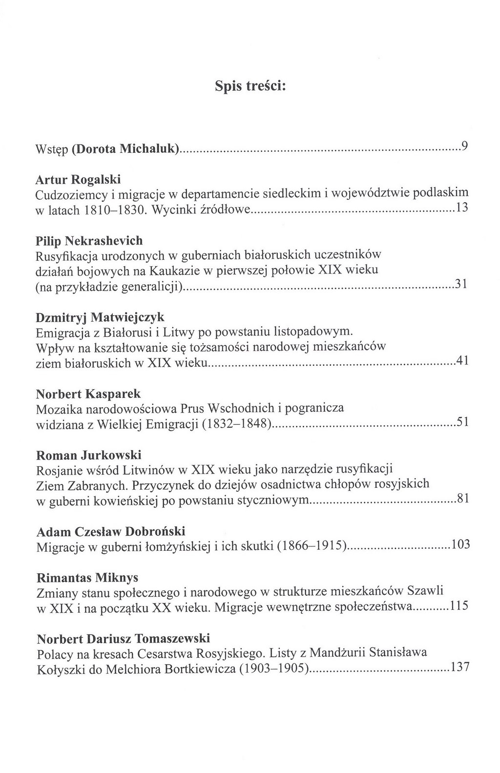 Migracje a tożsamości narodowa mieszkańców Europy Wschodniej z XIX i na początku XX wieku, p. red. D. Michaluk, Ciechanowiec 2016, ss. 352.