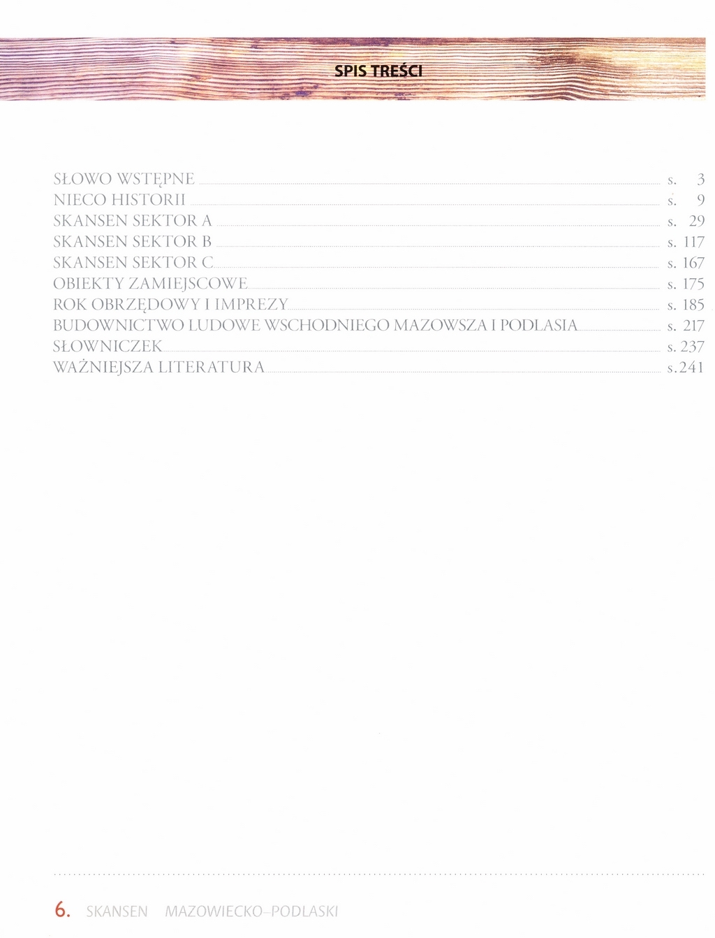 Publikacja przedstawia część Muzeum Rolnictwa im. ks. Krzysztofa Kluka jakim jest Skansen Mazowiecko-Podlaski. W publikacji znajdziemy opisy translokowanych na teren muzeum budynków drewnianych oraz obiektów małej architektury. Jako uzupełnienie przedstawiono zdjęcia i ryciny przedstawiające eksponaty prezentowane na ekspozycjach. Książka zawiera liczne fotografie dokumentujące wydarzenia o charakterze etnograficznym organizowane przez cały rok na terenie muzeum oraz fotografie archiwalne.