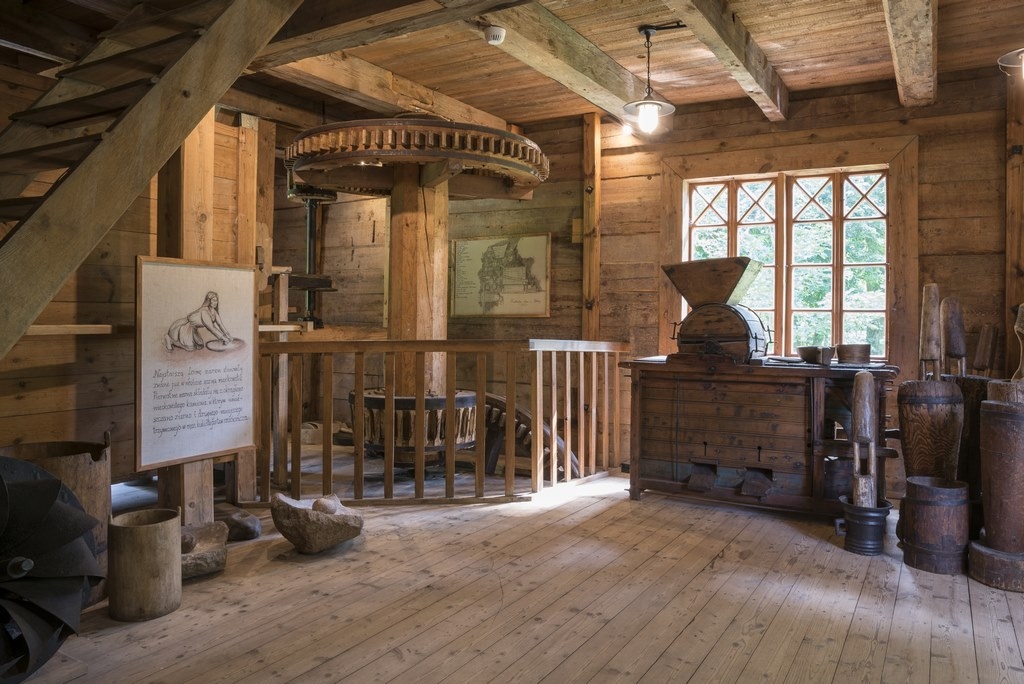 Młyn wodny – ekspozycje „Urządzenia młynarskie, żarna, stępy, miary, wagi”, „Muzeum Chleba”
