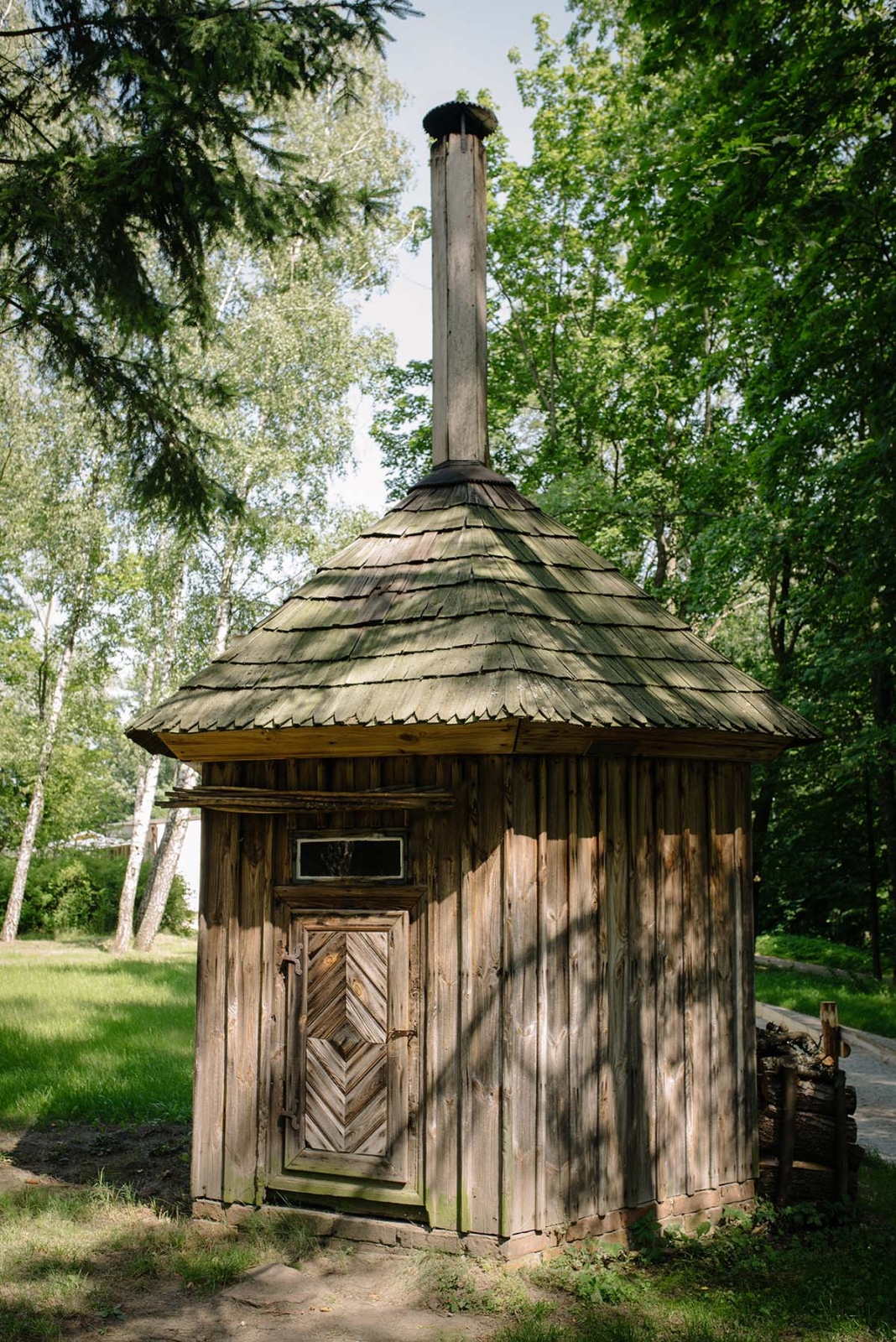 Budynek z dworu Ciecierskich (później Jezierskich) zbudowany w trzecim ćwierćwieczu XIX stulecia lub nawet wcześniej. Unikalny obiekt drewnianej architektury dworskiej w skali ogólnopolskiej. Posadowiony na murowanej podmurówce. Zbudowany z zastosowaniem konstrukcji szkieletowej, na planie sześcioboku foremnego. Ściany oszalowane deskami, dach namiotowy poszyty gontem, zwieńczony wysokim, wąskim drewnianym kominem nakrytym blaszaną czapką. Zrekonstruowane palenisko i wieszadła wewnątrz budynku umożliwiają pokazy wędzenia wędlin i mięsa w czasie imprez muzealnych