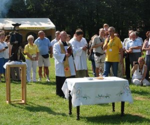 Obok stoisk z jadłem regionalnym na terenie skansenu na wygonie przy studni odbył się pokaz Święcenia Zwierząt. Modlitwę odmówił i dokonał pokropienia zwierząt przechodzących w dymie z płonącego ogniska Proboszcz Parafii pw. Matki Bożej z Fatimy ks. Grzegorz Śniadach.