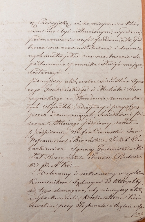 Na dokumencie znajduje się pokwitowanie kolejnych trzech rat kosztów wykonania rzeczonego nagrobka (wycenionego na 3.500 złotych, czyli 525 rubli srebrem) oraz ostateczne pokwitowanie i rozwiązanie całkowicie dopełnionej umowy, co miało miejsce w dniu 8 (18) października 1848 roku, w Ostrożanach. Opisany we wspomnianym dokumencie nagrobek stoi do dnia dzisiejszego na cmentarzu w Ostrożanach.
