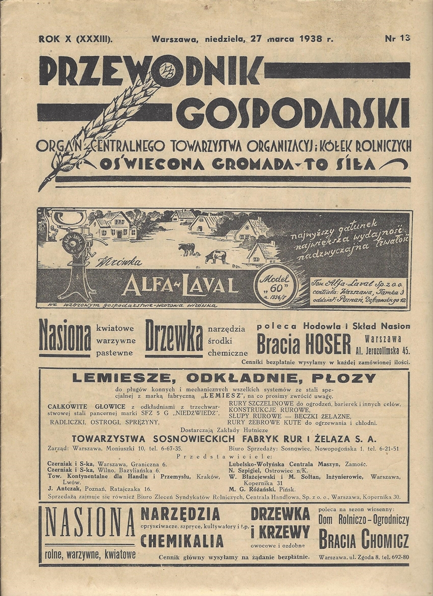Przewodnik gospodarski 27.03.1938 Nr 13 // zbiory archiwalne Muzeum Rolnictwa w Ciechanowcu