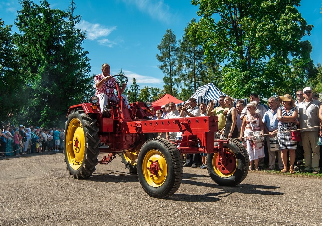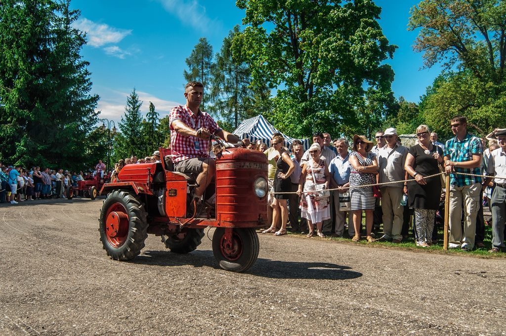 Duży zachwyt i podziw widzów budziła parada maszyn z kolekcji Działu Techniki Rolniczej Muzeum tj. 12 zabytkowych ciągników i 2 lokomobil, za kierownicą których zasiedli pracownicy Muzeum.