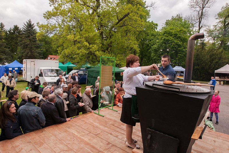 Podobnie jak w roku ubiegłym zawiodła nas tylko pogoda! Ciechanowiecki Jarmark Świętego Wojciecha AD 2014 rozpoczął się przy niskiej temperaturze powietrza, swoją "cegiełkę" dołożył też deszcz, co chwila "umilający" festyn. Pomimo to znakomita większość wystawców (twórców ludowych) oraz handlowców nie zawiodła organizatorów i pojawiła się we wczesnych godzinach rannych przed pałacem w Ciechanowcu-Nowodworach. Nie zawiedli też odbiorcy imprezy, czyli widzowie, którzy początkowo nieśmiało, ale w miarę upływu czasu i systematycznie poprawiającej się pogody coraz liczniej pojawiali się na terenie Muzeum Rolnictwa. Gdy spoza chmur wyjrzało słońce nawet sprzedawcy lodów nie mogli narzekać na klientelę, choć największym uznaniem cieszyły się nadal gorące potrawy i napoje.