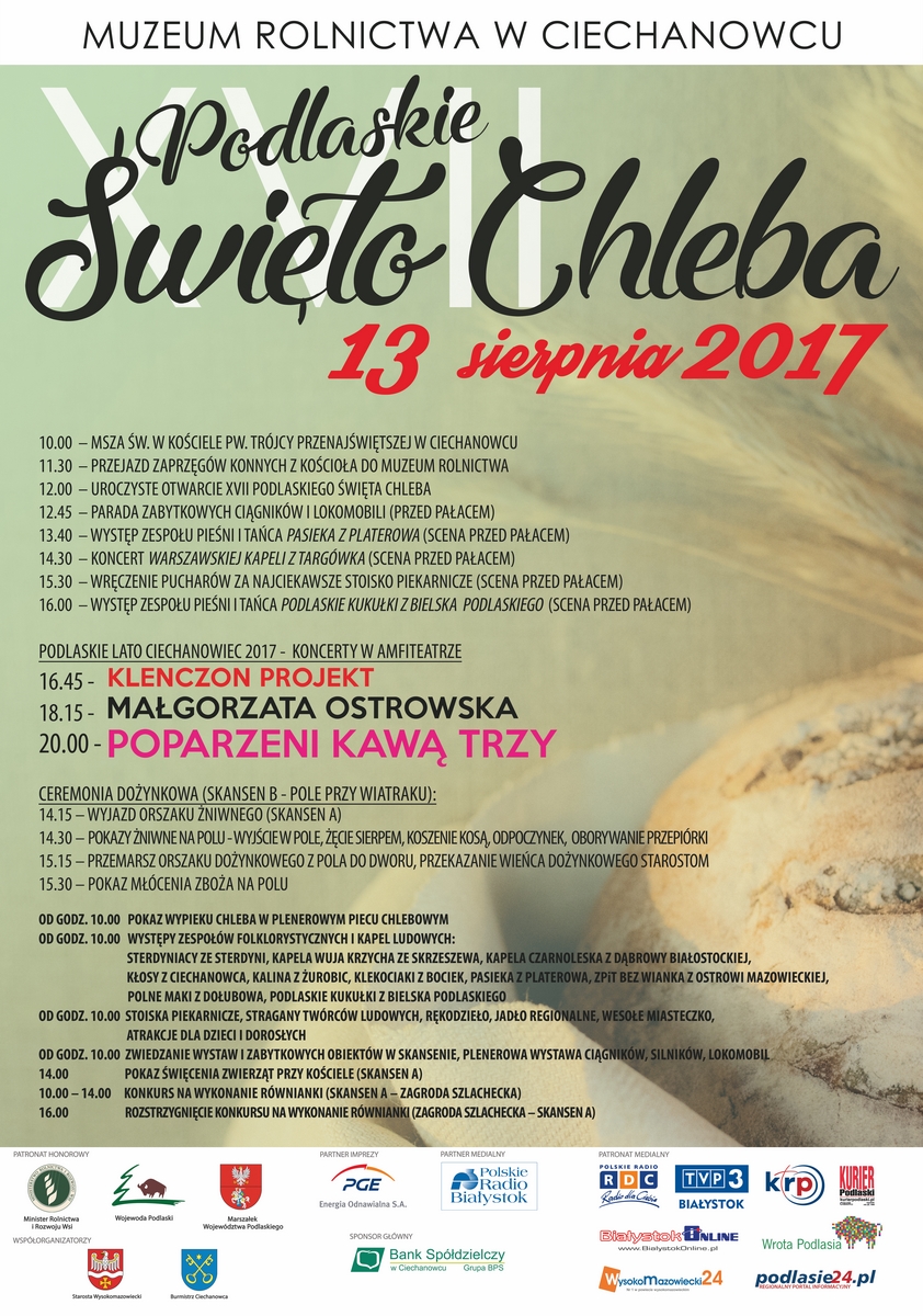 PROGRAM UROCZYSTOŚCI XVII PODLASKIEGO SWIĘTA CHLEBA 2017