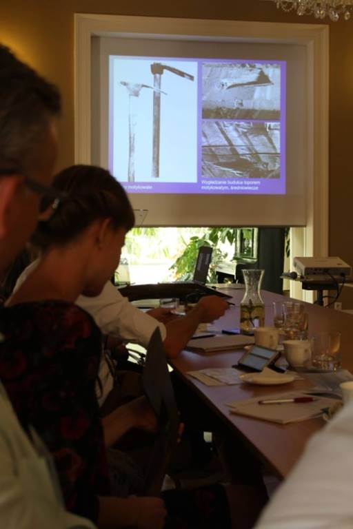 Dnia następnego, w sali konferencyjnej XIX-wiecznego pałacu hr. Starzeńskich, oficjalnie rozpoczęła się piąta edycja Szkoły Letniej PKN ICOMOS. Dzień ten w całości został poświęcony wykładom - zapoznani zostaliśmy z formami ochrony budownictwa drewnianego, technicznymi i historycznymi aspektami materiału budowlanego, jakim jest drewno. Były także wykłady dotyczące badań i dokumentowania obiektów zabytkowych zbudowanych z drewna oraz referaty prezentujące zagadnienie tzw. warszawskiego świdermajer. Przekazana wiedza miała nas wprowadzić w kolejny dzień, który określić można mianem „objazdu”. Referaty były niezwykle interesujące i pełne ciekawostek. I tak na ten przykład dowiedzieliśmy się, że tłoka ciesielska to nie urządzenie, a piękny słowiański zwyczaj pomocy sąsiedzkiej i jednocześnie niezwykle ciekawy projekt, który zamierza zrealizować Muzeum w Ciechanowcu.