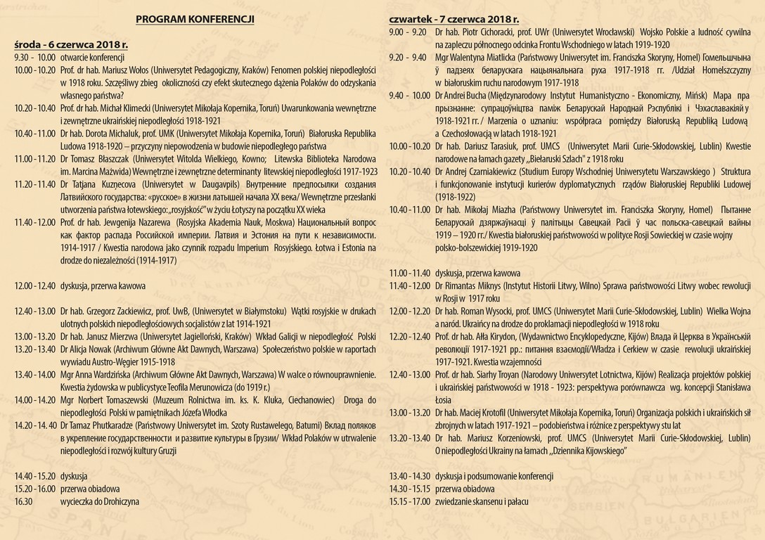 Jesteś na stronie: Konferencja historyczna "Drogi do niepodległości narodów Europy Wschodniej 1914 - 1921"