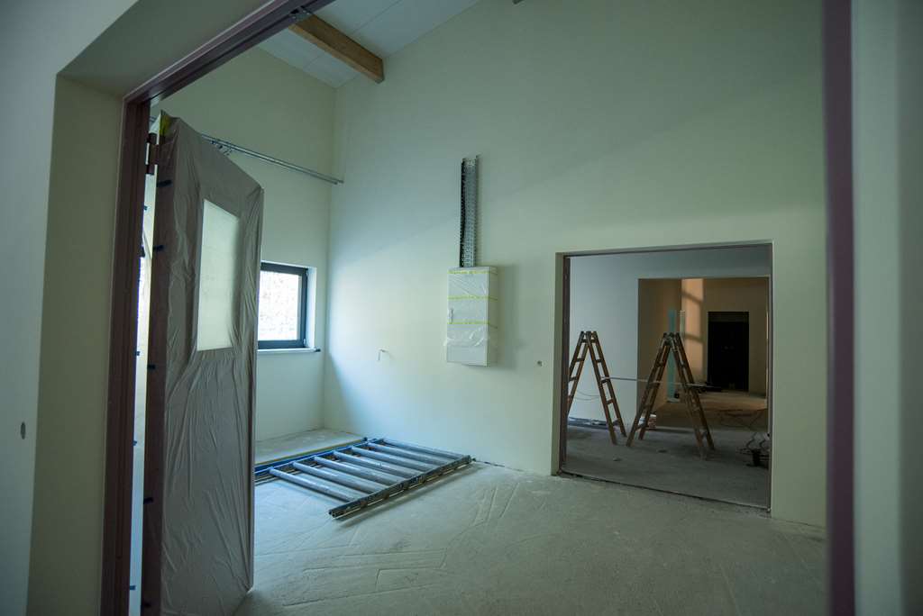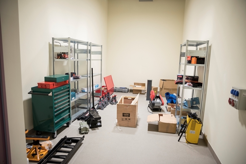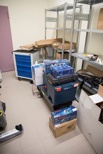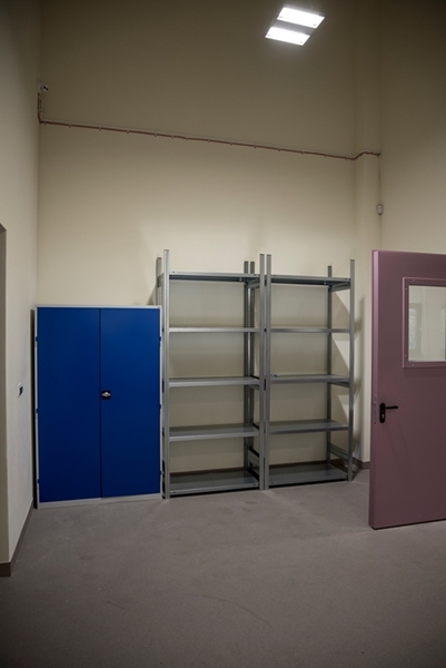 Realizacja zadania obejmuje również zakup do pracowni i magazynów mebli biurowych oraz zestawów komputerowych z oprogramowaniem. Do pracowni digitalizacji zbiorów zostanie zakupiony sprzęt fotograficzny i komputerowy wraz ze sprzętem uzupełniającym m.in. oświetleniem studyjnym i plenerowym, reflektorami, statywami, stojakami oraz obiektywami i lampami błyskowymi. Pracownie techniczne wyposażone będą w sprzęt typu: wiertarka, czopiarka, frezarka, szlifierka taśmowa, pilarka tarczowa, tokarka do drewna, spawarka, sprężarka, piaskarka, strugarka czterostronna, digestorium, myjka ciśnieniowa. W pomieszczeniach magazynowych zainstalowane zostaną nowoczesne, przesuwne i sterowane elektronicznie zestawy regałów o profilu dostosowanym do charakteru poszczególnych magazynów. Dla potrzeb pracowników zostaną zakupione stoły, krzesła oraz szafy ubraniowe. Zakupione również zostaną akumulatorowe wózki podnośnikowe oraz zewnętrzny silos do magazynowania wiórów i trocin. W ramach zadania zostanie wykonane ogrodzenie nowopowstałej infrastruktury.